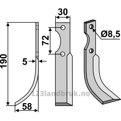 Rotorfreskniv – 190x30x5mm – Venstre – Nibbi Decimo