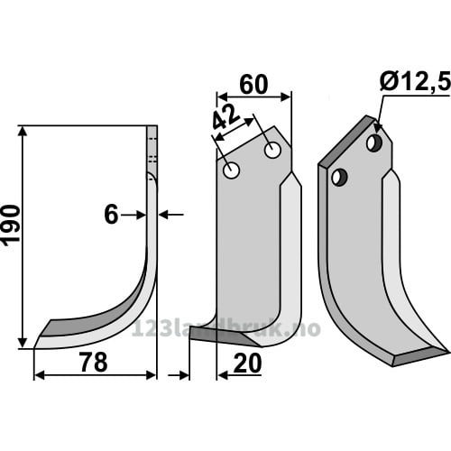 Rotorfreskniv, 190x60x6 mm, Venstre til Nibbi Bruno
