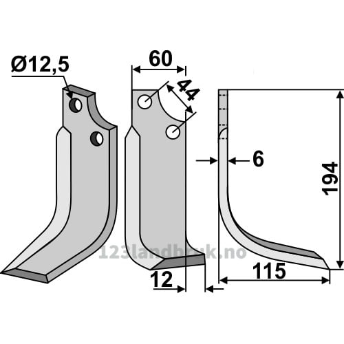 Rotorfreskniv – 194x60x6mm – Høyre – Gaspardo, Maschio