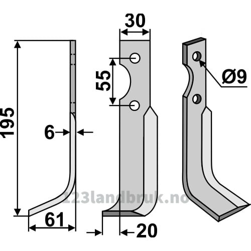 Rotorfreskniv, 195x30x6 mm, Venstre til Grillo (Pinza)