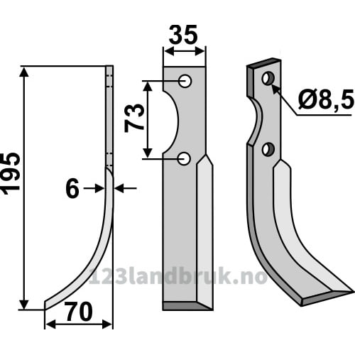 Rotorfreskniv – 195x35x6mm – Venstre – Pasbo