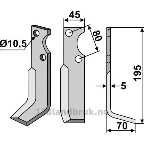 Rotorfreskniv – 195x45x5mm – Høyre – Barbieri, FM-Matras, Goldoni