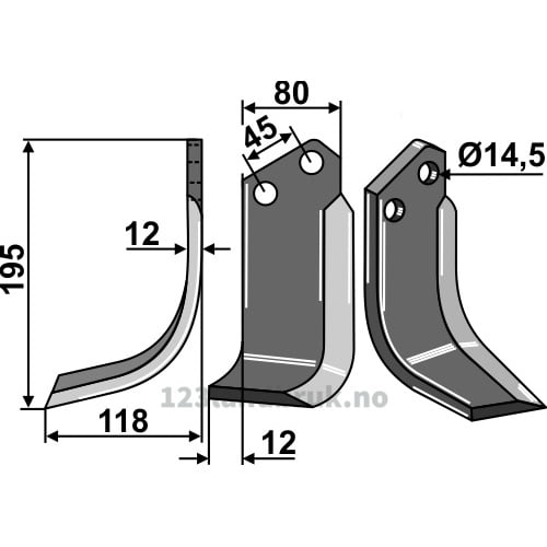 Rotorfreskniv, 195x80x12 mm, Venstre til Maletti