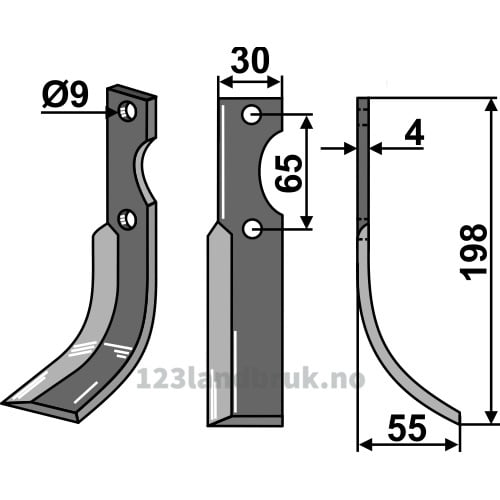 Rotorfreskniv, 198x30x4 mm, Høyre til Benassi
