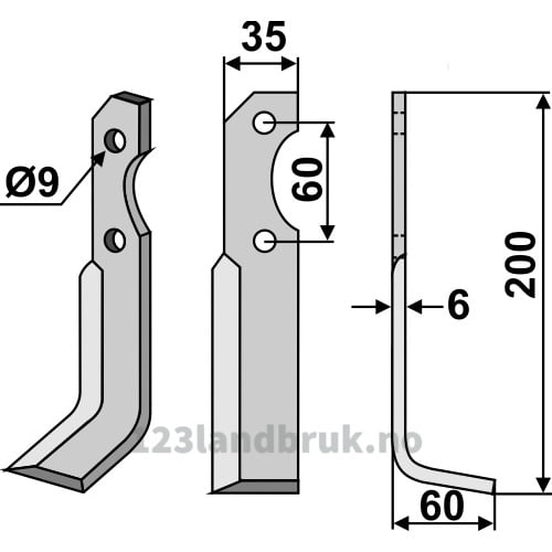 Rotorfreskniv, 200x35x6 mm, Høyre til Brumital-Agris