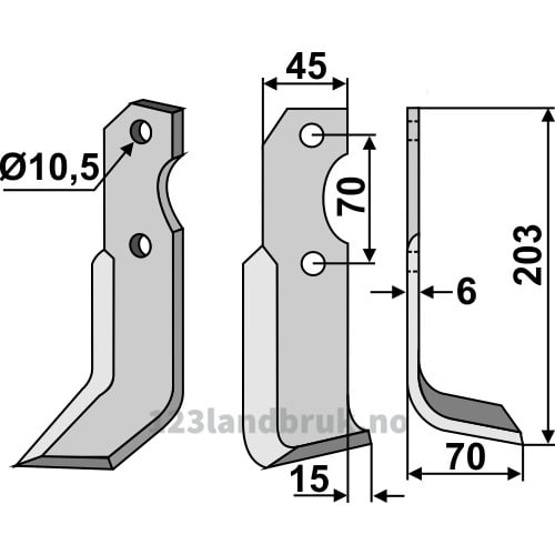 Rotorfreskniv, 203x45x6 mm, Høyre til Brumital-Agris