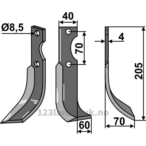 Rotorfreskniv – 205x40x4mm – Høyre – Honda