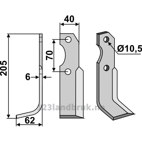 Rotorfreskniv – 205x40x6mm – Venstre – Brumital-Agris