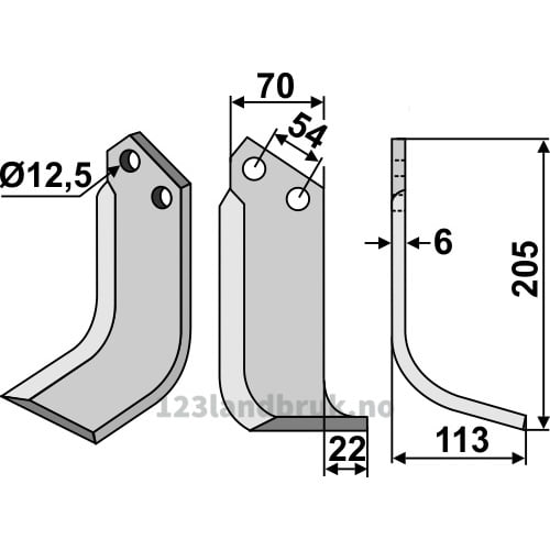 Rotorfreskniv – 205x70x6mm – Høyre – Dondi, Goldoni