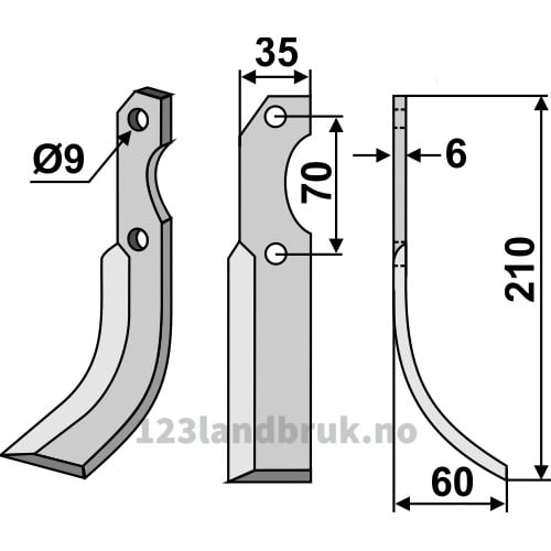Rotorfreskniv, 210x35x6 mm, Høyre til Valpadana, Brumital-Agris