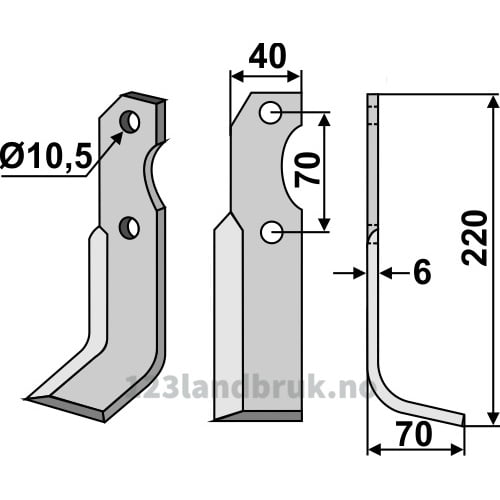 Rotorfreskniv – 220x40x6mm – Høyre – Brumital-Agris