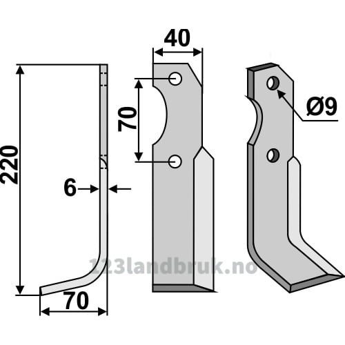 Rotorfreskniv, 220x40x6 mm, Venstre til Brumital-Agris