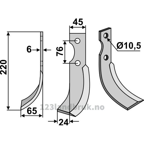 Rotorfreskniv – 220x45x6mm – Venstre – Grillo (Pinza)