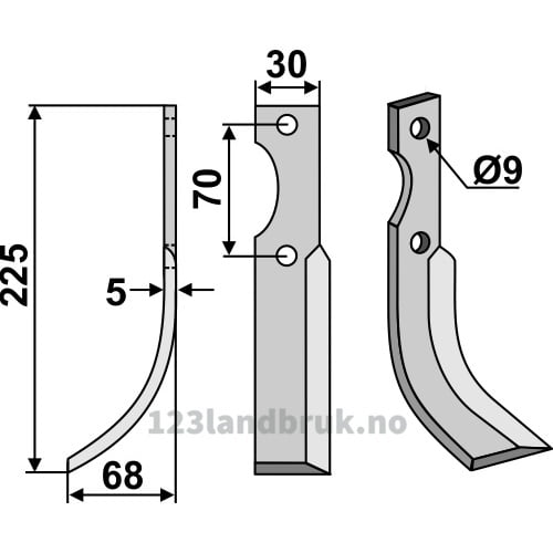 Rotorfreskniv – 225x30x5mm – Venstre – Honda
