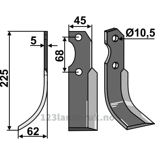 Rotorfreskniv, 225x45x5 mm, Venstre til Barbieri