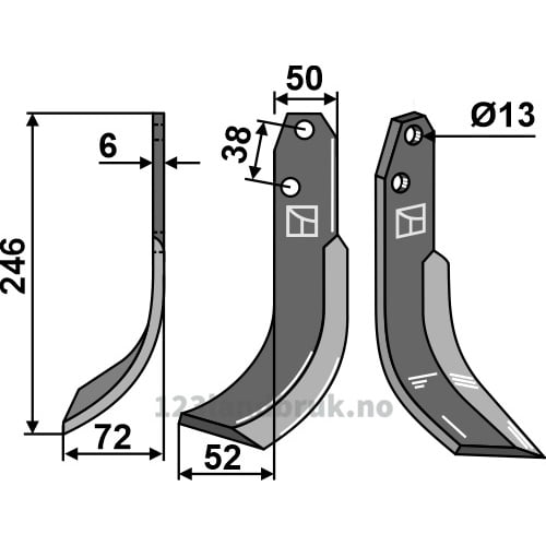 Rotorfreskniv, 246x50x6 mm, Venstre til Valpadana
