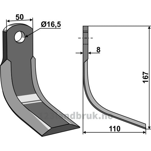 Rotorfreskniv til – 167x50x8mm – Bobcat