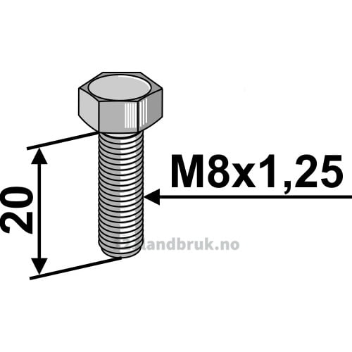 - Sekskantbolt: M8 x 1,25 x 20 – 8.8 – Stål