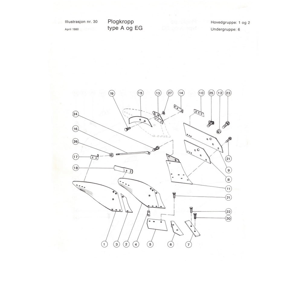 Eksempel: En 14″ plog har 12″ skjær, f.eks. 415 082.
