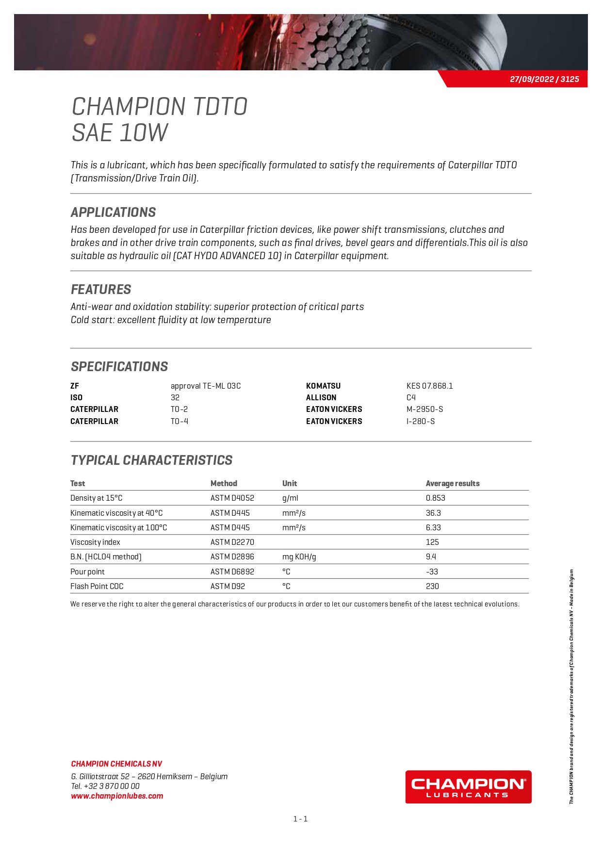 CHAMPION TDTO SAE 10W – Girolje – 205 liter