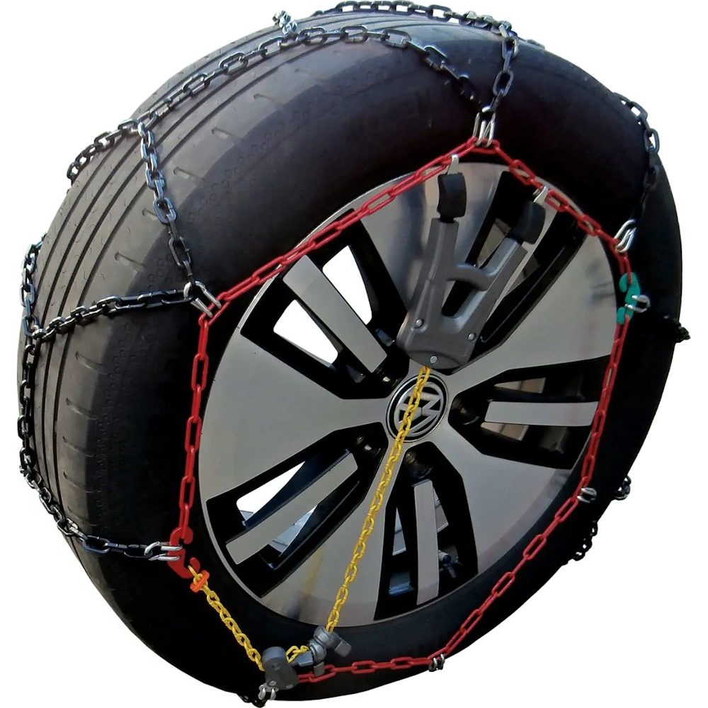 TRYGG Magí er en prisgunstig kjetting for personbiler, som monteres raskt og enkelt uten behov for verktøy. Den leveres i en praktisk koffert for enkel oppbevaring i bilen.